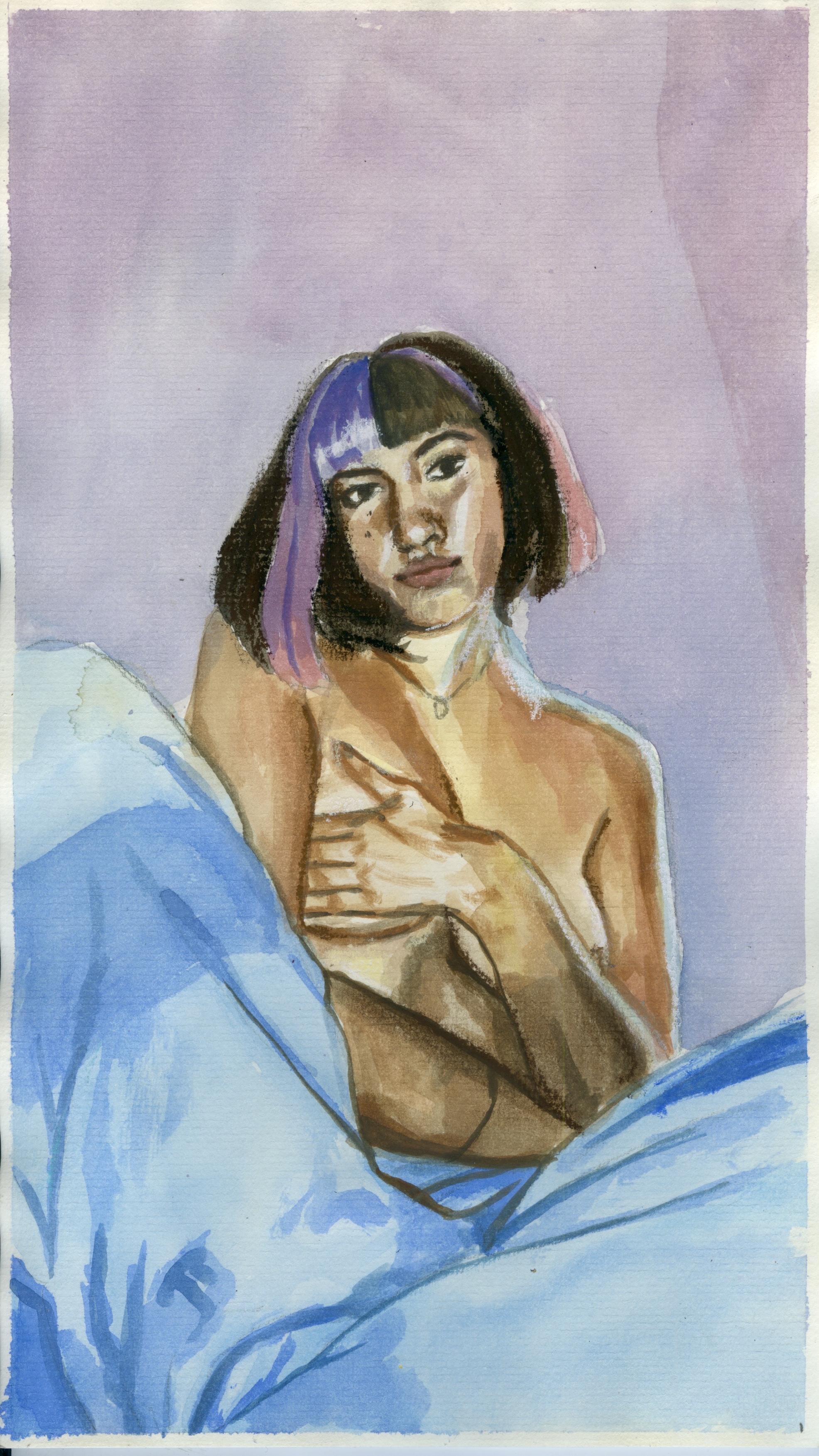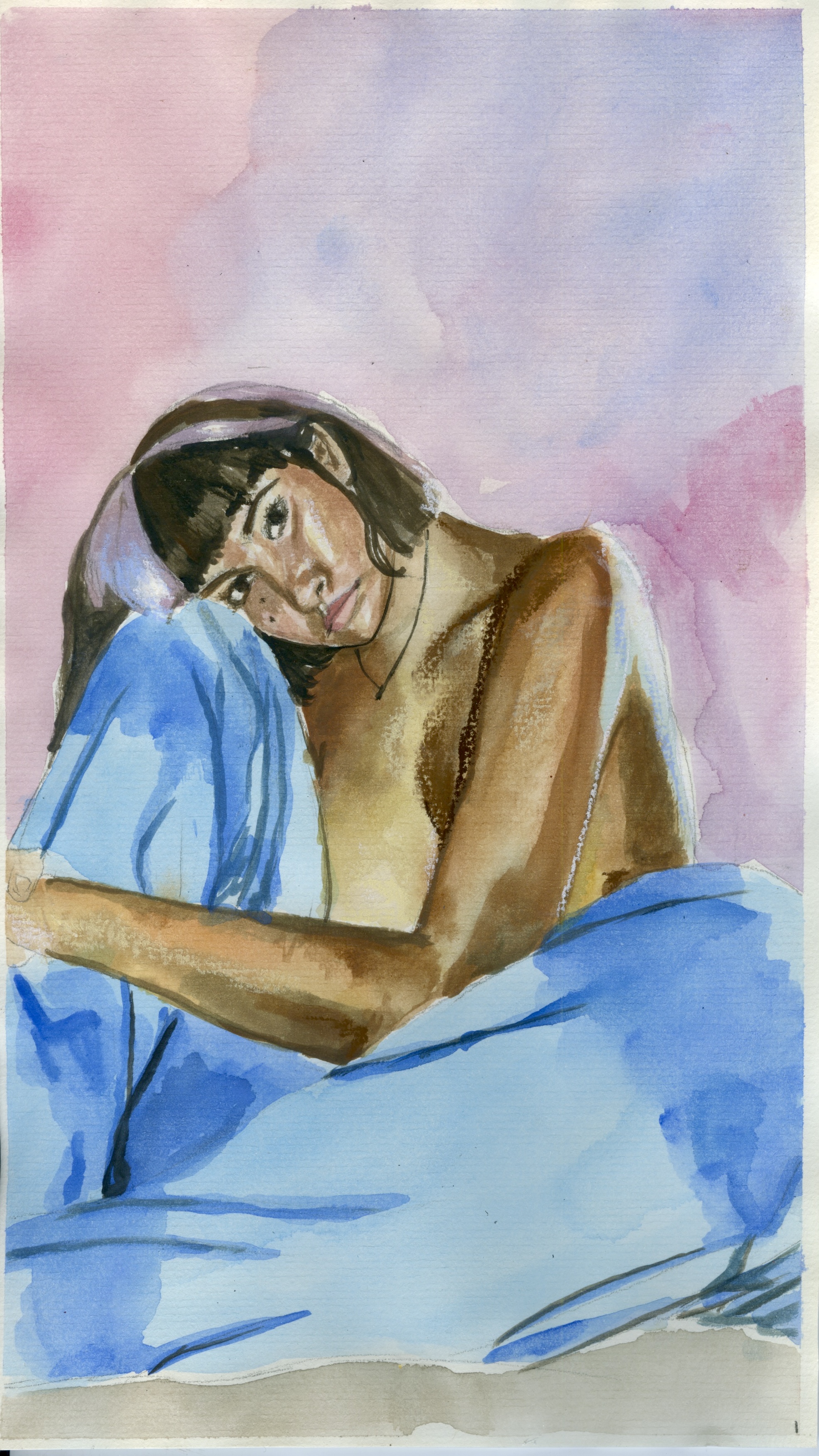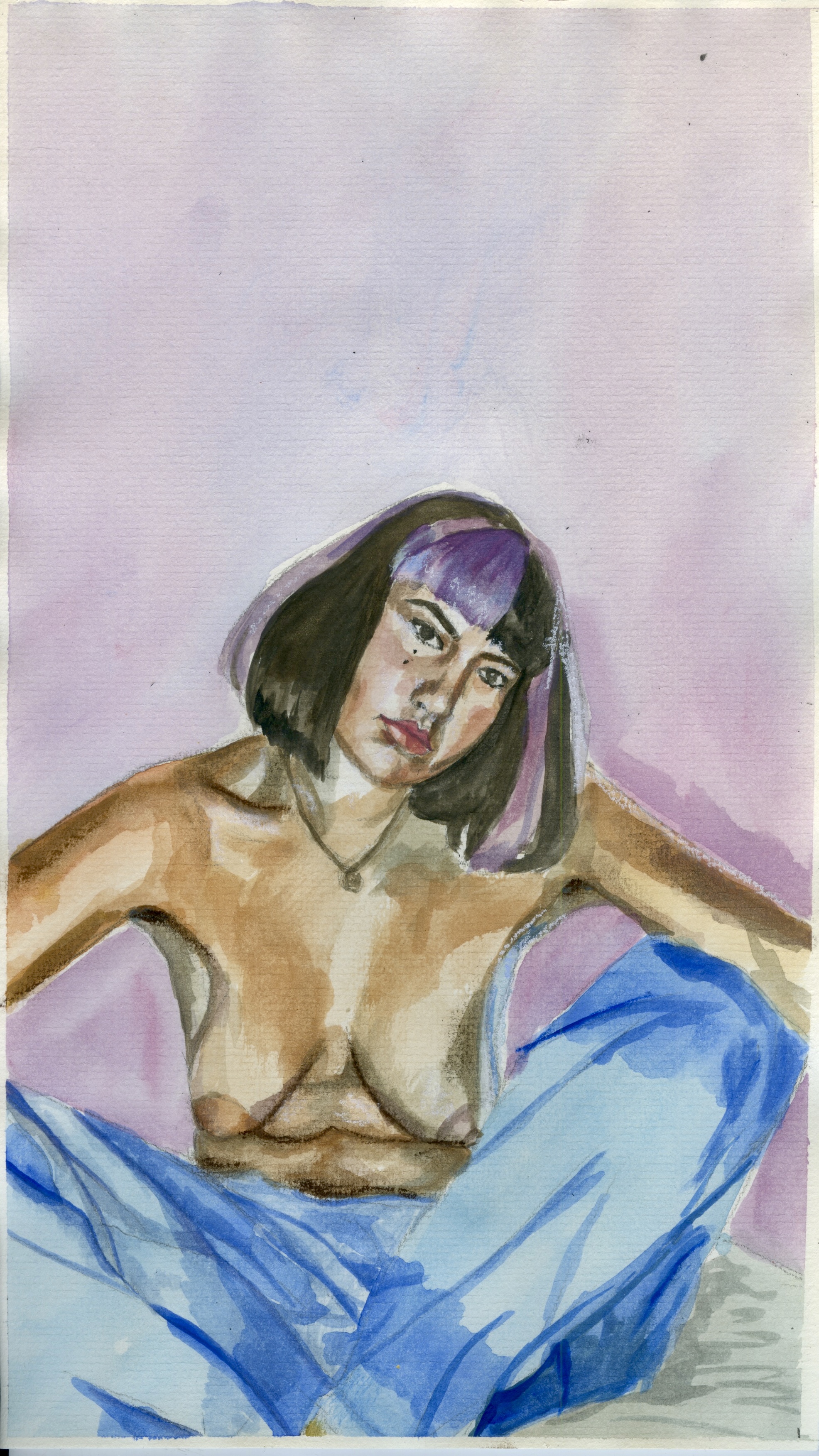 Self Portrait, in my Joggers – Triptych, 2022, watercolour and pastel on paper, 29.1 x 16.4 cm each.