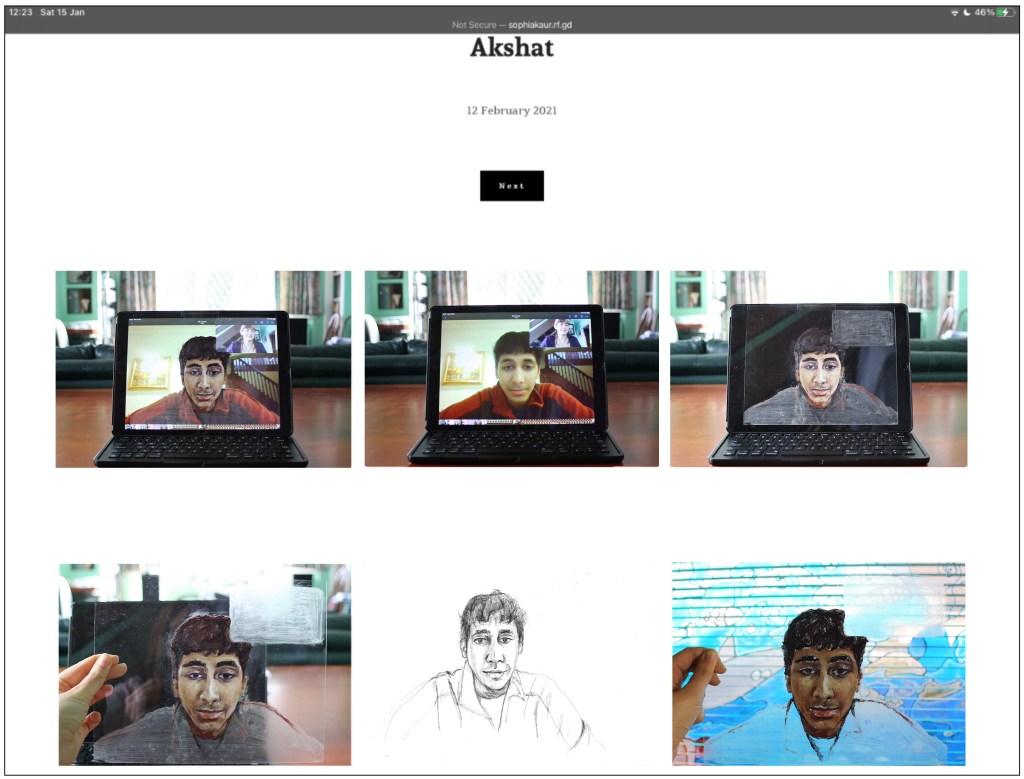 During the second lockdown in 2021, I created a website called the “Lockdown Series.” On this website, I dedicated a page to each person I drew while having on video call. The pages also included their portrait painted with oils on clear perspex, some videos from the call and audio clips.
